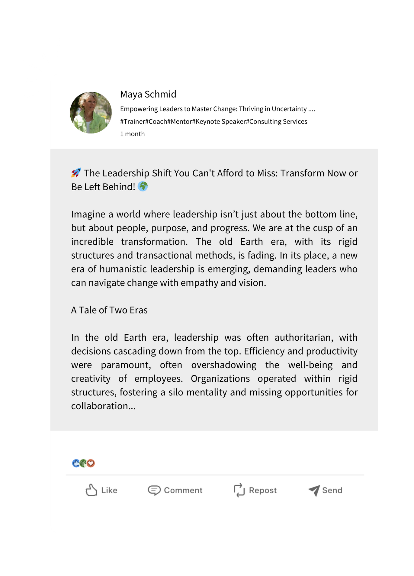 "In a world where there is so much uncertainty, Maya’s 3 stage transformative Roadmap, of creating a certain working environment is golden!